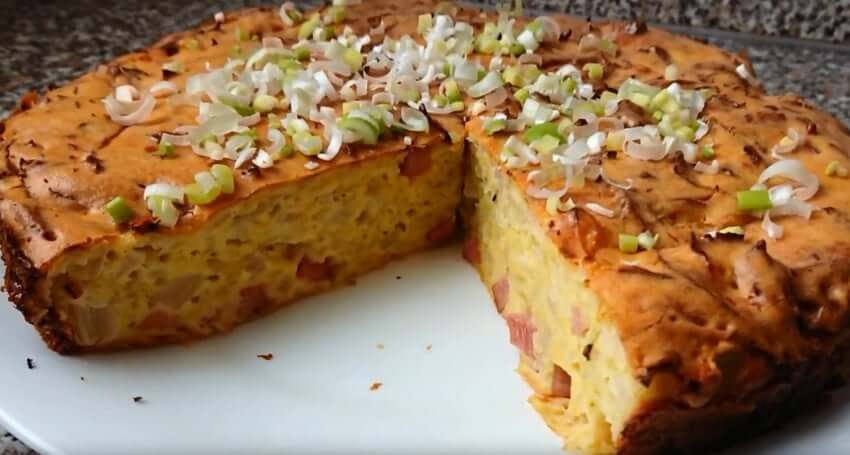 Готовим быстрый закусочный пирог с колбасой и картофелем